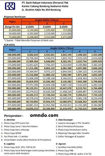 Tabel Angsuran KUR BRI Syariah Terbaru Oktober 2019 (5-25 ... : Tabel Pinjaman Dan Angsuran Sesuai Tenor Kredit Bank Bri Terbaru 2020.
