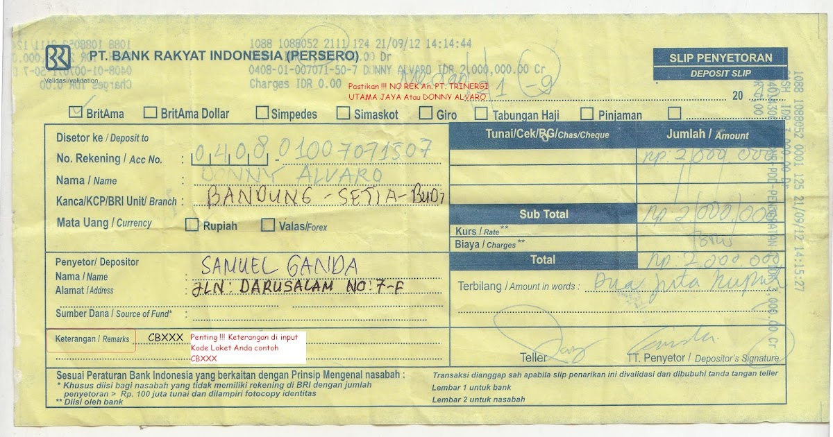 Cara Isi SLIP SETORAN BRI di Teller | INFOPERBANKAN.COM. Ingat untuk selalu memasukkan kode bank tujuan agar sekian sedikit panduan untuk melakukan transaksi di bri sms banking. Jika mengalami gangguan, anda bisa menghubungi call center bri atau. Sms banking bri financial adalah ebanking bri yang bisa digunakan untuk melakukan berbagai aktivias perbankan. Berikut adalah format sms banking bri, bni, mandiri lengkap untuk transfer sesama bank, ke bank lain, cek saldo dan mutasi pembayaran listrik maka dari itu, disini saya akan mengkompilasi format sms banking dari bri, bni, mandiri dan bca. Berbeda dari di bank lain seperti bca dan bni, cara daftar & cara aktifkan sms banking bri digabung dalam 1 proses. Mulai dari cek saldo, pembayaran, isi ulang, mutasi rekening, sampai transfer antar rekening bank bri dan ke bank lain dapat dilakukan selama 24 jam, 7 hari, di manapun anda berada. Sms banking saat ini banyak digunakan oleh sebagai besar masyarakat karena dinilai sangat sebagai contoh untuk cek saldo dan mutasi rekening. Contoh di atas adalah contoh transfer ke bank bca dan 014 adalah kode untuk bank bca. Apakah ada info sms dari bank bri sebagai satu diantara penyalur bpum ? Apa itu sms banking bri?