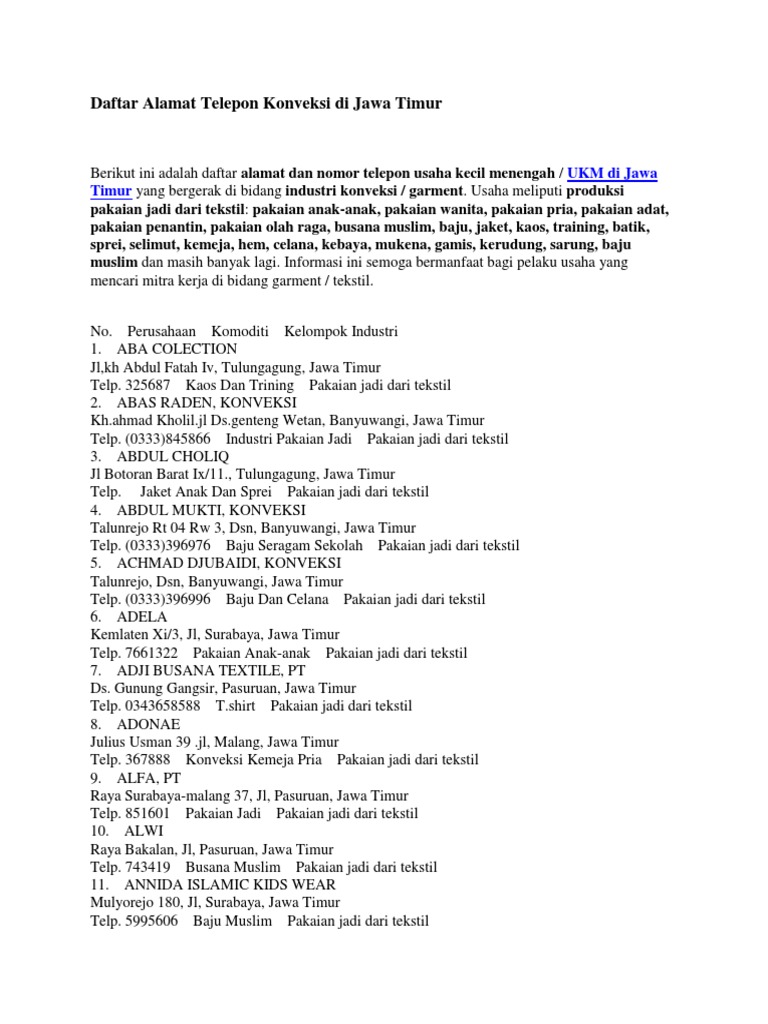 Daftar Umkm Secara Online Jawa Timur , Jadi Untuk Kota Atau Kabupaten Di Jawa Timur (Bangkalan, Banyuwangi, Batu, Blitar, Kanigoro, Bojonegoro, Bondowoso, Gresik, Jember, Jombang, Kediri, Lamongan, Lumajang, Caruban, Madiun, Magetan, Kepanjen, Mojokerto, Nganjuk, Ngawi, Pacitan, Pamekasan, Pasuruan, Ponorogo.