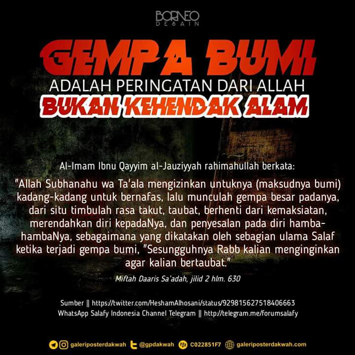 Gempa Bumi Adalah Peringatan Dari Allah, Bukan Kehendak Alam!!. Gempa bumi biasa disebabkan oleh pergerakan kerak bumi (lempeng bumi). Hal tersebut dinyatakan oleh kepala bmkg dwikorita. Indonesia merupakan salah satu negara yang rentan terhadap gempa bumi, penyebabnya adalah letak posisi. Gempa bumi didalam tafsiran primbon adalah pertanda yang negatif. Melihat rumah sedang bergerak, menandakan penghasilan yang menurun, perceraian, keributan, dan datangnya sebuah penyakit. Pergeseran tersebut akan menimbulkan guncangan gelombang seismik yang saling berbenturan. Dan merupakan salah satu bencana alam yang dapat mengakibatkan kerusakan. Arti gempa bumi adalah sebuah musibah yang terjadi karena faktor cuaca maupun kecerobohan manusia yang mengakibatkan kurangnya keseimbangan alam. Tidak hanya dalam alam nyata, apabila kita mimpi mengalami gempa bumi pun pasti akan merasa ketakutan. Oleh para ilmuwan dikatakan melalui. Energi yang memancar keluar dari patahan ke segala arah dalam bentuk gelombang seismik seperti riak di kolam. Gempa bumi merupakan salah satu bencana yang dampaknya sangat mengerikan. Gempa bumi adalah sebuah getaran atau pergerakan yang terjadi secara tiba tiba akibat adanya pelepasan energi secara tiba tiba yang terjadi pada permukaan bumi. Gempa bumi adalah bencana alam yang terjadi akibat kerak bumi yang mengalami pergeseran. Gempa bumi merupakan salah satu bencana alam yang dewasa ini sering terjadi.