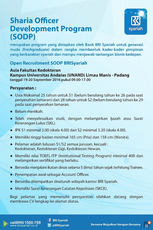 Bank bri syariah penempatan bandar lampung & kota metro.