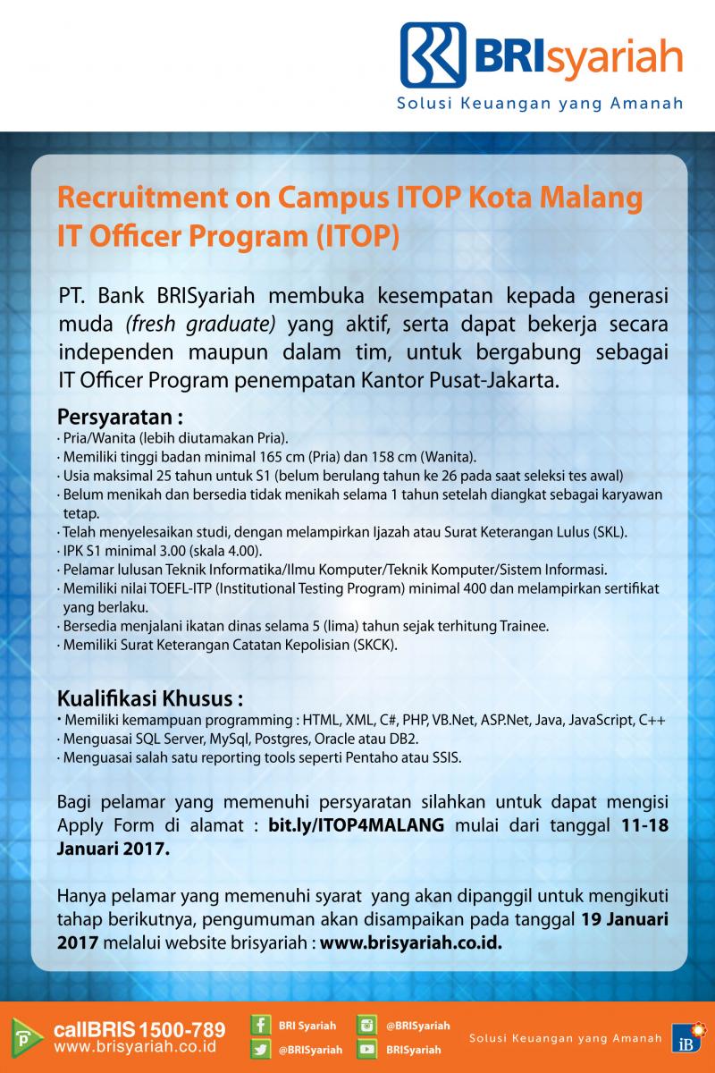 Lowongan Kerja BRI Syariah KC Malang Terbaru Januari 2020 ... : Bank Syariah Mandiri Tumbuh Sebagai Bank Yang Dan Berikut Ini Kami Cantumkan Alamat Dan Nomor Telepon Kantor Cabang Bank Syariah Mandiri Yang Ada Di Kota Malang Jawa Timur.